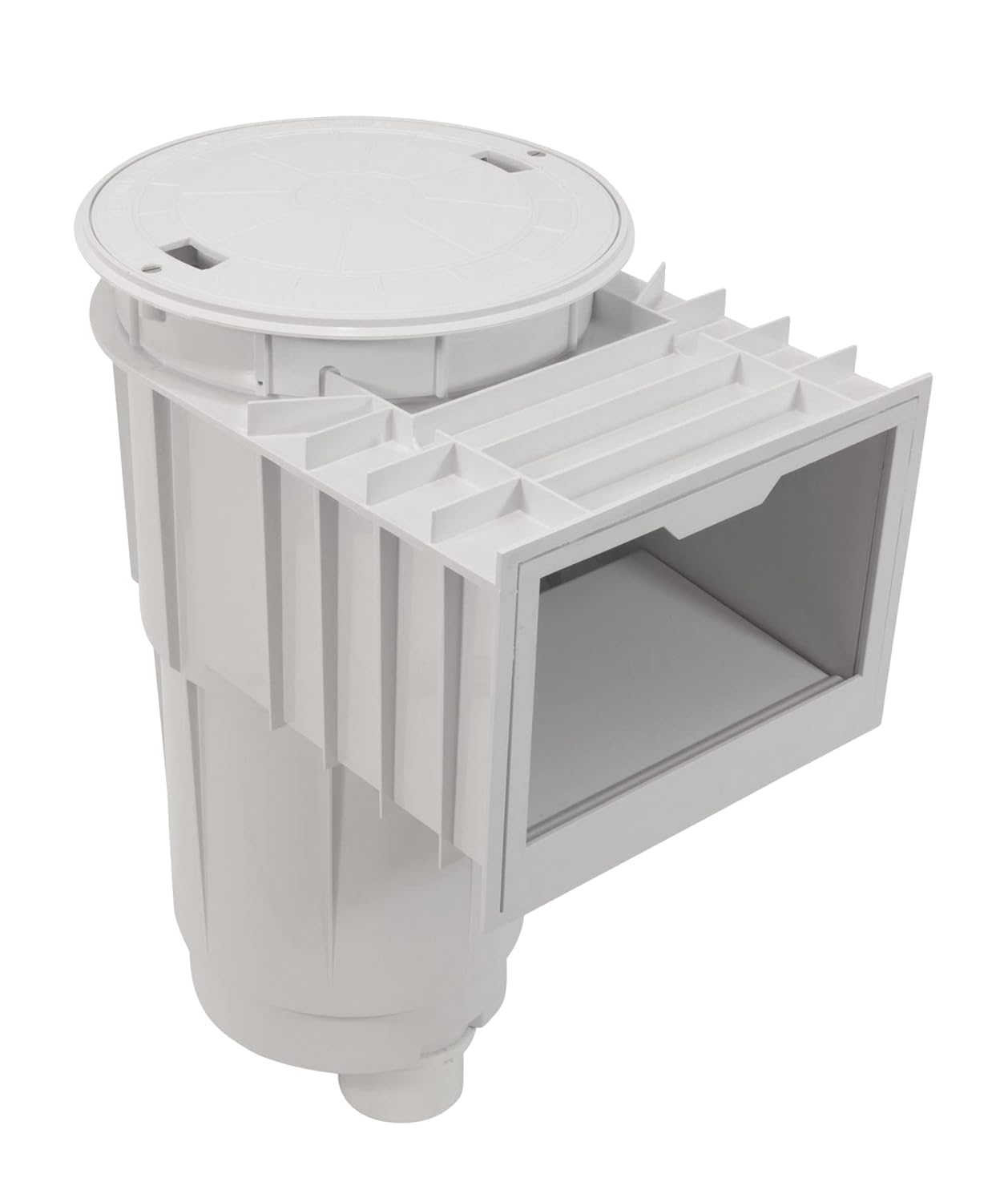 - Customizable Design: Adjustable deck collar, self-adjusting 8" weir with stainless steel spring, and various port sizes for versatile plumbing options.